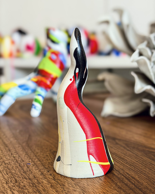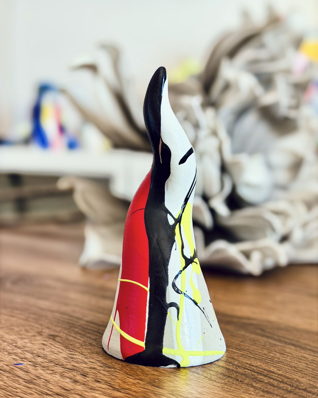 Corno in terracotta dipinto a mano, pezzo unico. Altezza circa 10cm.