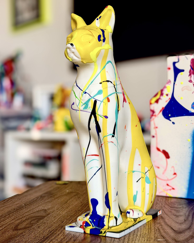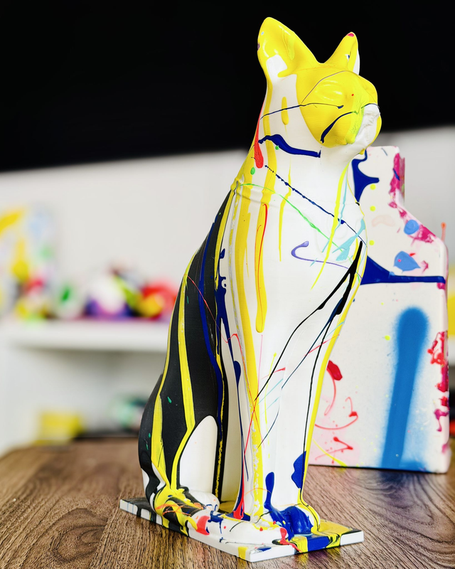 Gatto in resina dipinto a mano, pezzo unico. Altezza circa 30 cm.