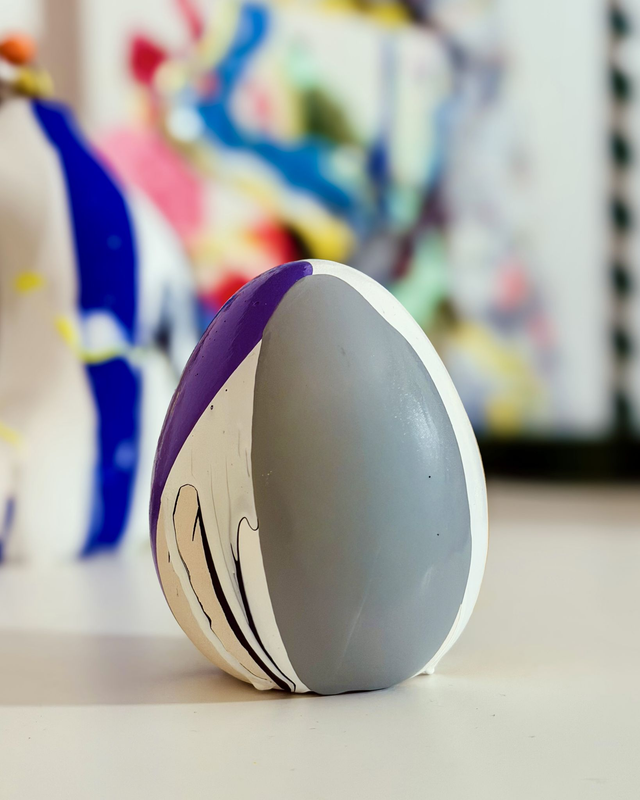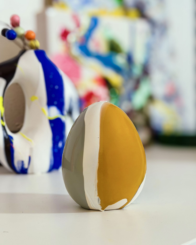 Uovo in terracotta dipinto a mano, pezzo unico. Altezza circa 10cm.