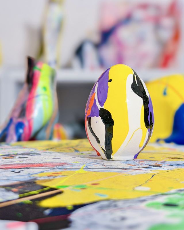 Uovo in terracotta dipinto a mano, pezzo unico. Altezza circa 6cm.