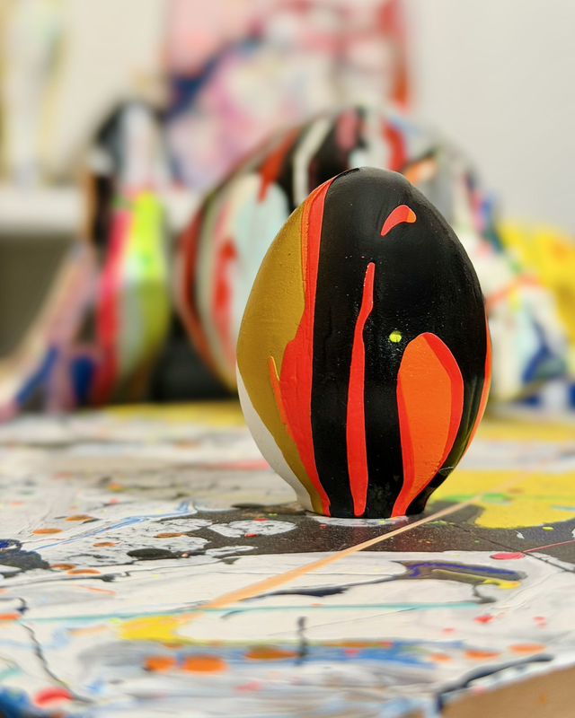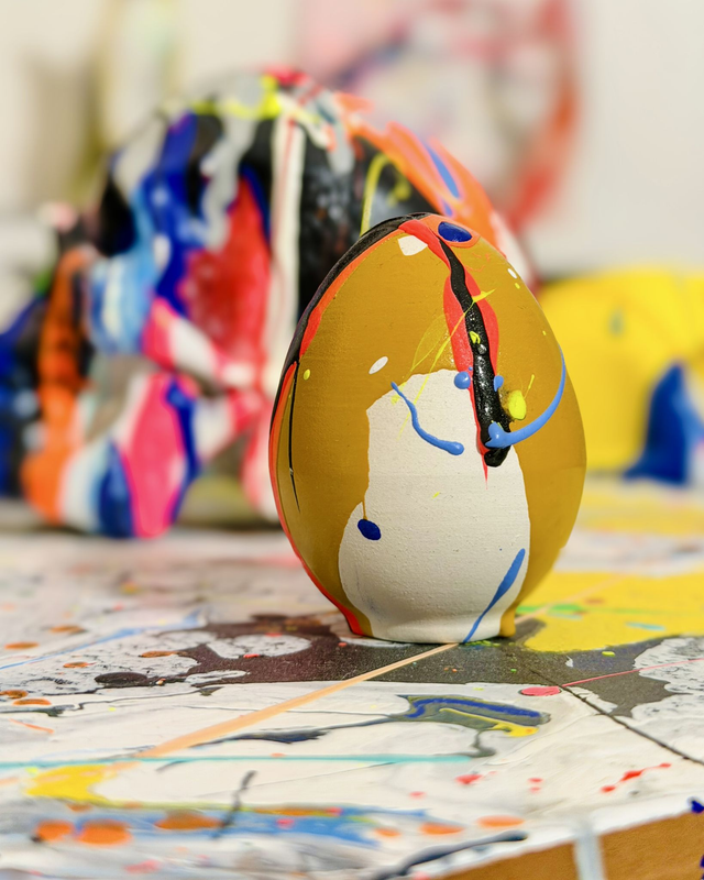 Uovo in terracotta dipinto a mano, pezzo unico. Altezza circa 6cm.
