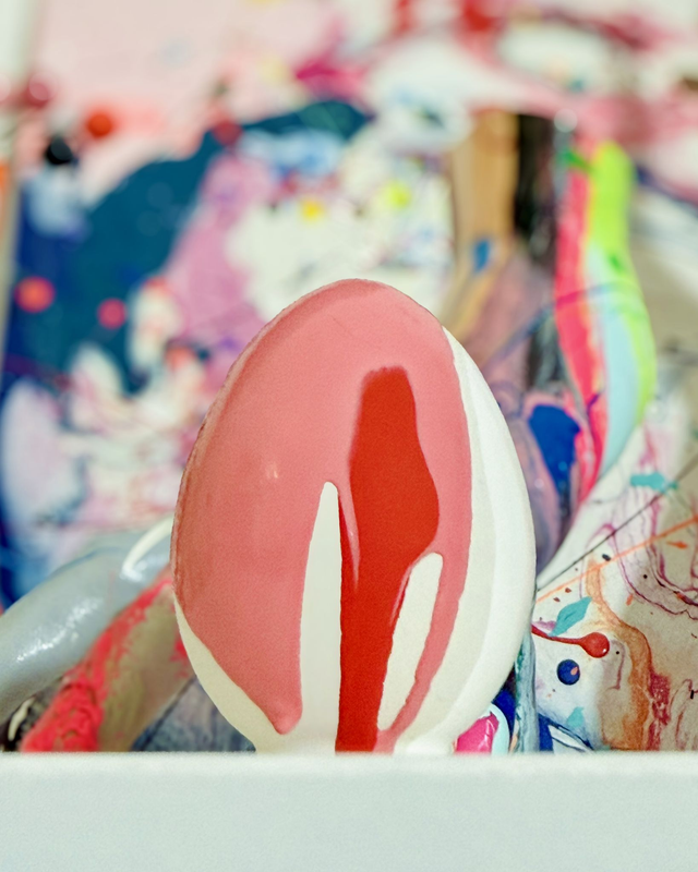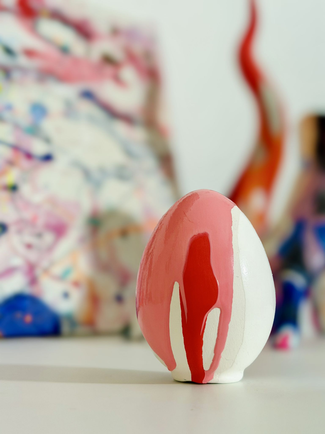 Uovo in terracotta dipinto a mano, pezzo unico. Altezza circa 6cm.