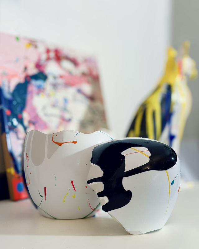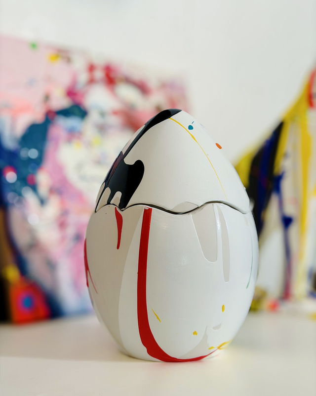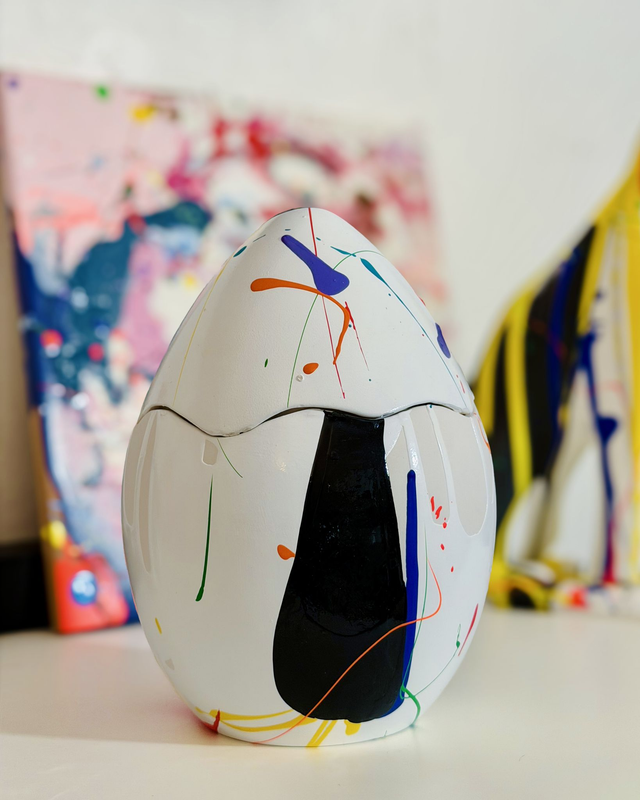 Uovo apribile in terracotta dipinto a mano, pezzo unico. Altezza circa 25cm.
