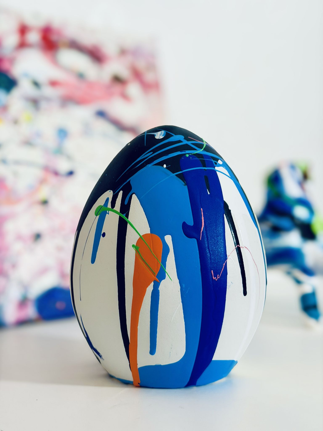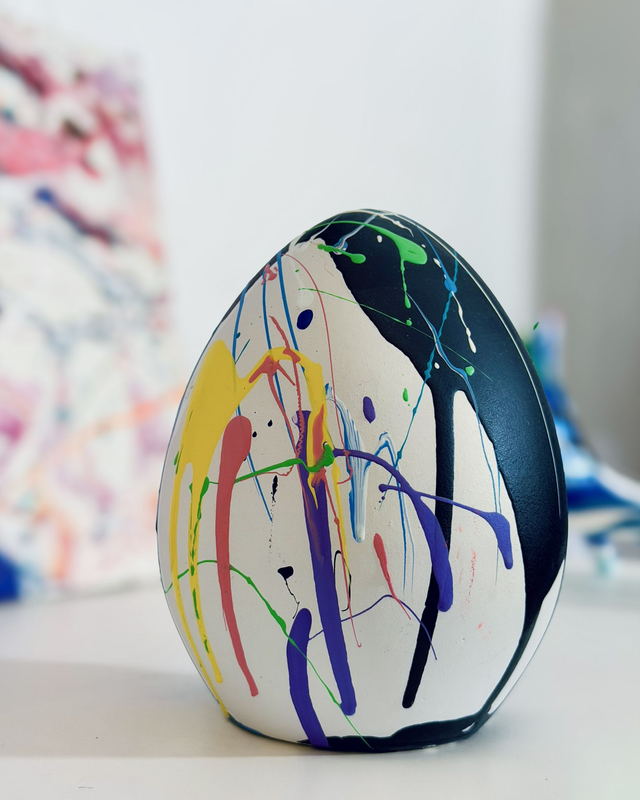 Uovo in terracotta dipinto a mano, pezzo unico. Altezza circa 15cm.