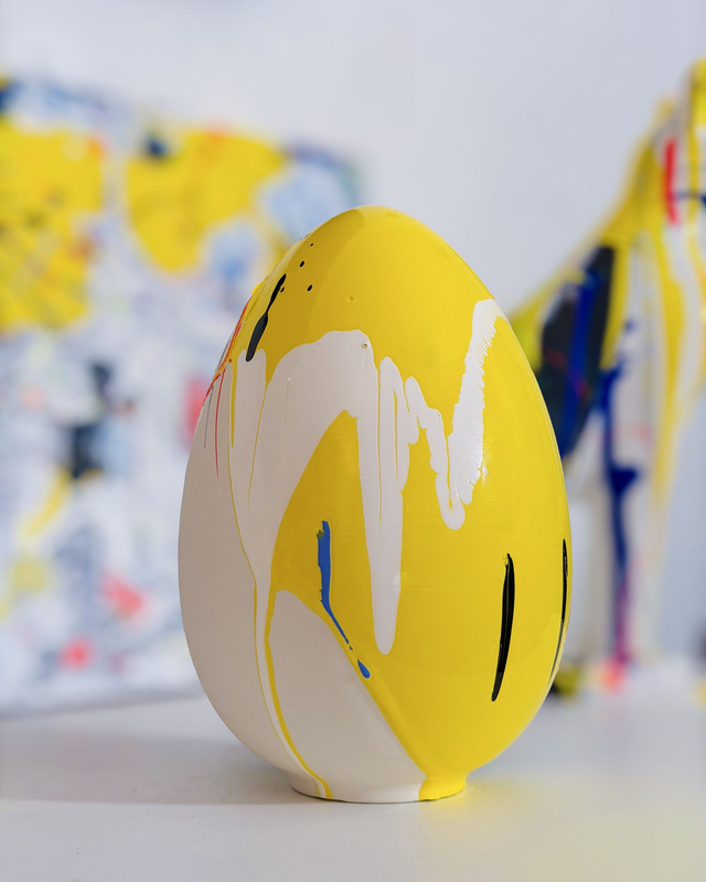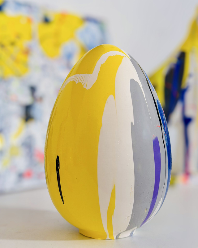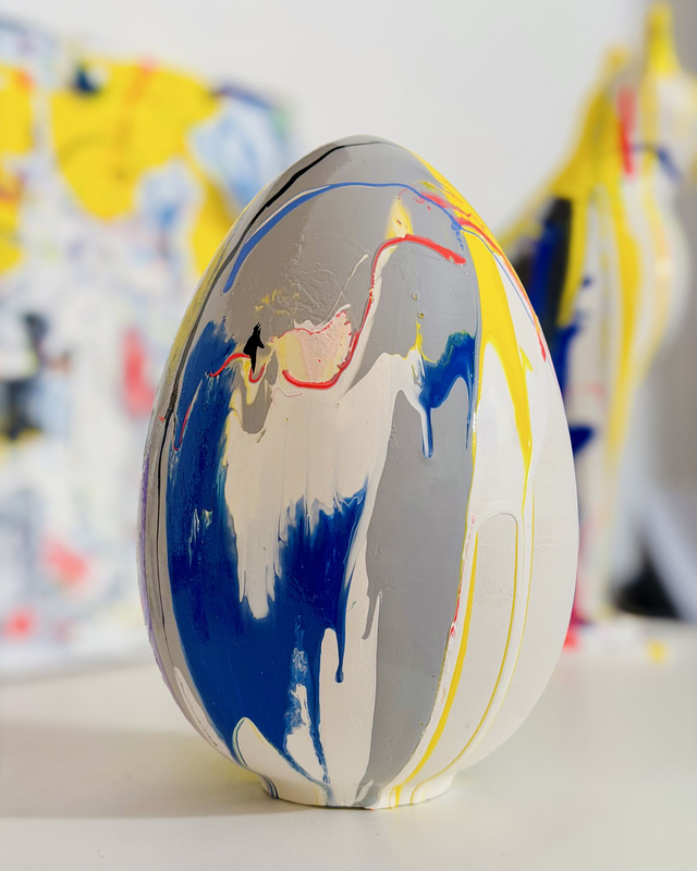 Uovo in terracotta dipinto a mano, pezzo unico. Altezza circa 15cm.