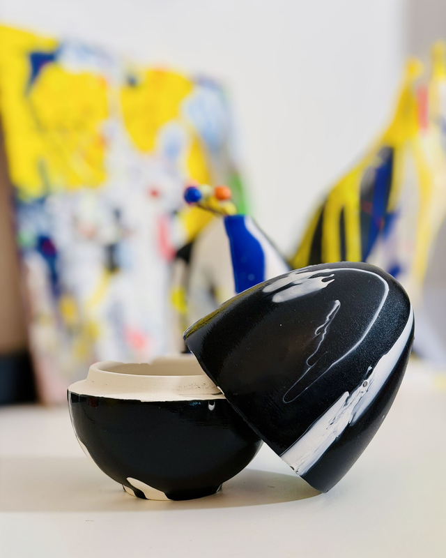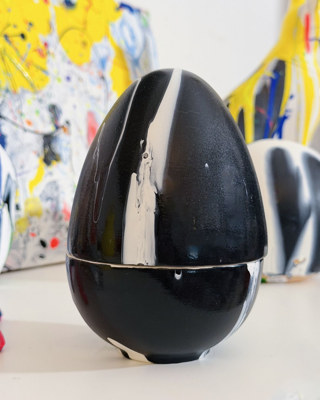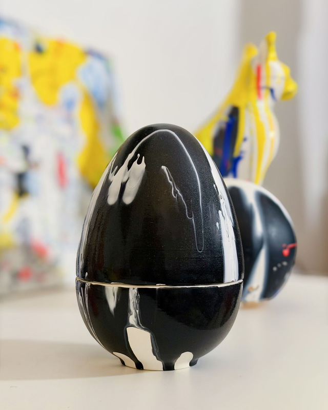 Uovo in terracotta dipinto a mano, pezzo unico. Altezza circa 15cm.