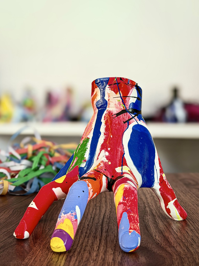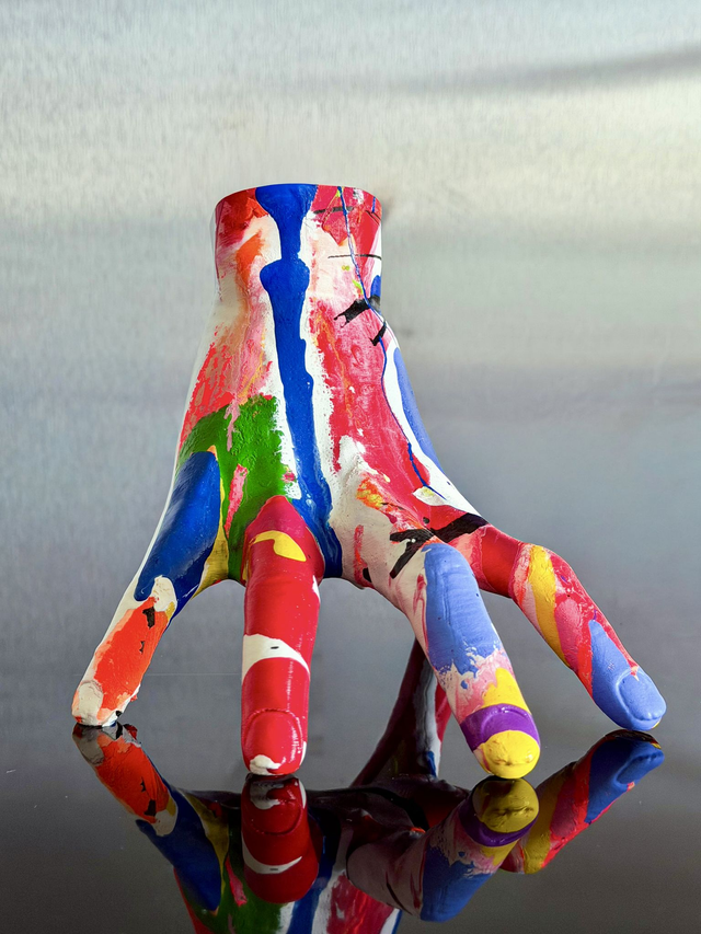 Mano in resina vegetale PLA dipinta a mano, pezzo unico. Larghezza circa 15cm.