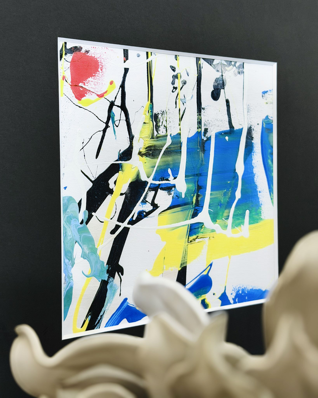 Dipinto su tela e passe-partout, pezzo unico. Larghezza circa 40cm.