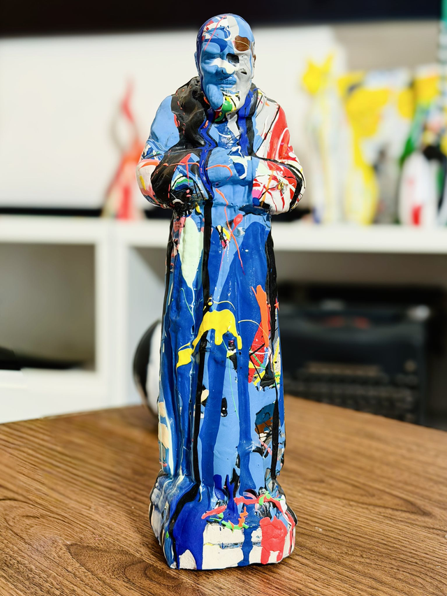 Statua in gesso dipinta a mano, pezzo unico. Altezza circa 25cm.