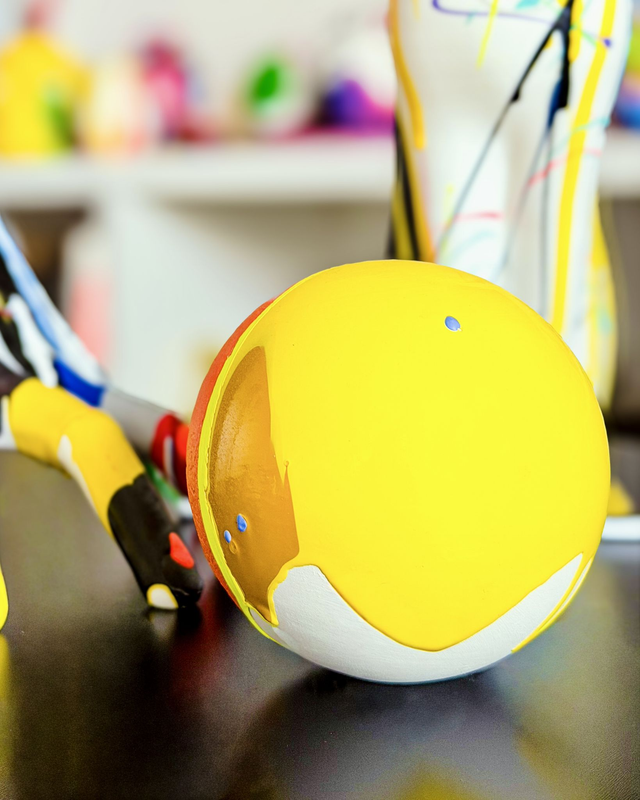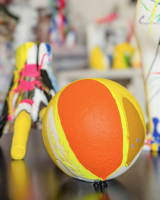 Sfera in terracotta dipinta a mano, pezzo unico. Diametro circa 10cm.