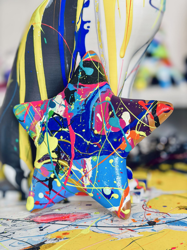 Stella in terracotta dipinta a mano, pezzo unico. Larghezza circa 15cm.