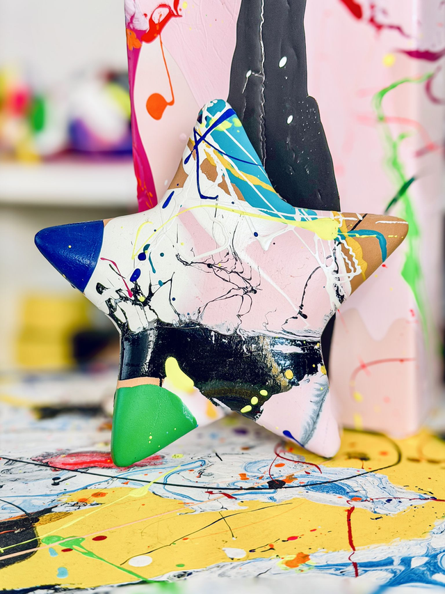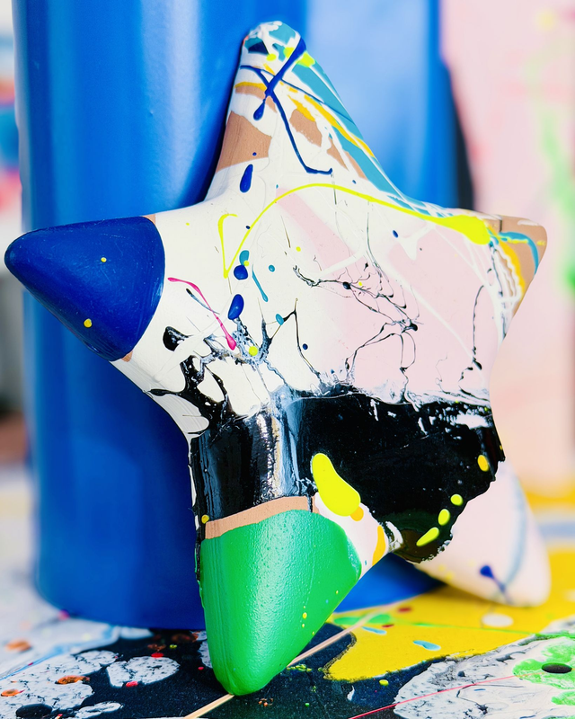 Stella in terracotta dipinta a mano, pezzo unico. Larghezza circa 15cm.