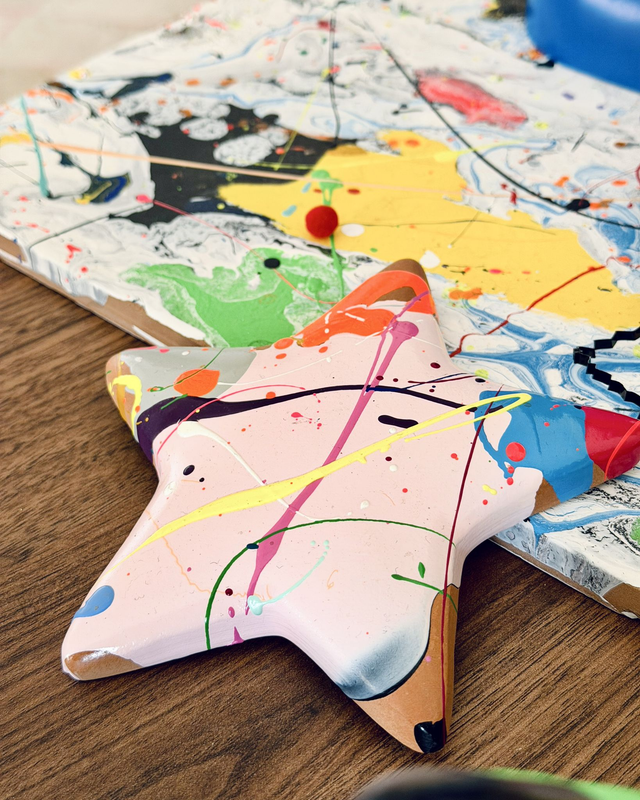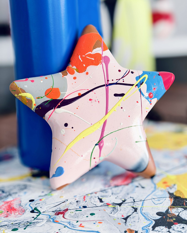 Stella in terracotta dipinta a mano, pezzo unico. Larghezza circa 15cm.