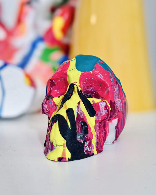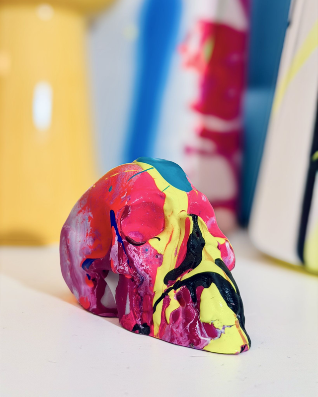 Teschio in resina dipinto a mano, pezzo unico. Dimensioni circa 5x8cm.