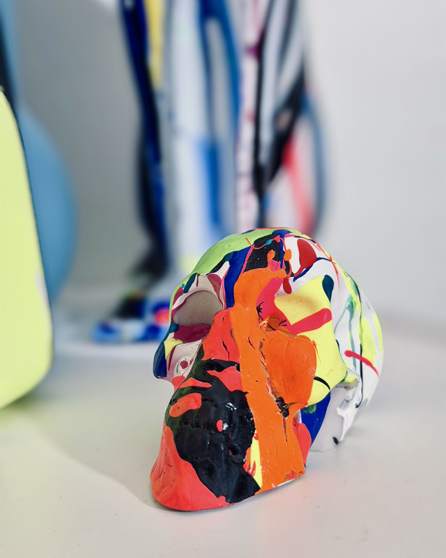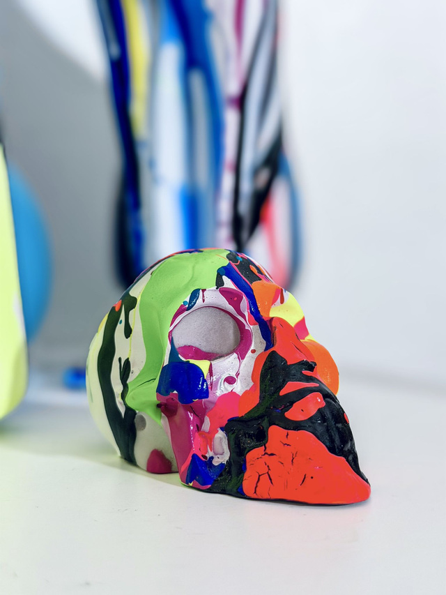 Teschio in resina dipinto a mano, pezzo unico. Dimensioni circa 5x8cm.