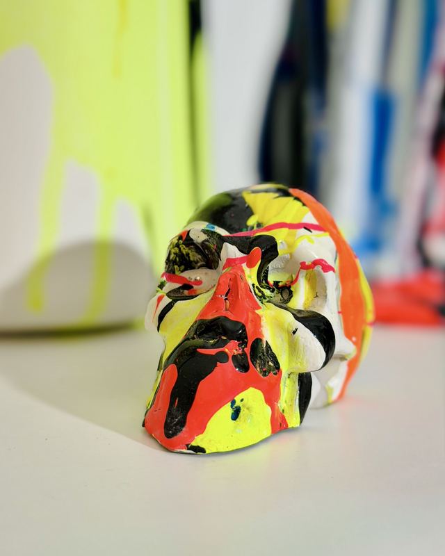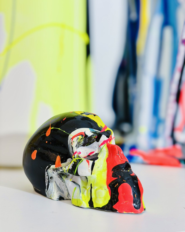 Teschio in resina dipinto a mano, pezzo unico. Dimensioni circa 5x8cm.