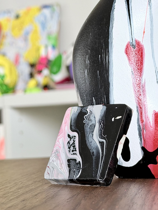 Base in terracotta dipinta a mano, pezzo unico. Larghezza circa 5cm.