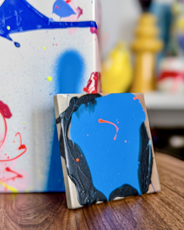Base in terracotta dipinta a mano, pezzo unico. Larghezza circa 10cm.