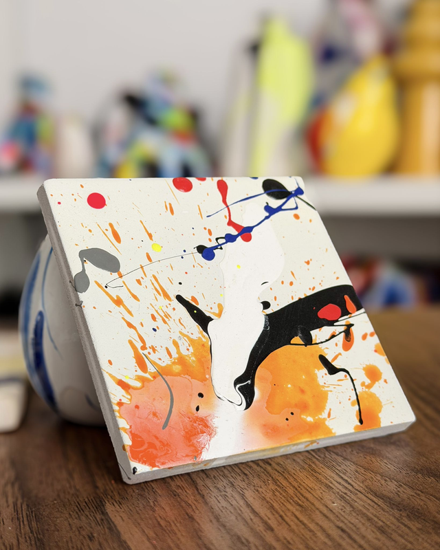 Base in terracotta dipinta a mano, pezzo unico. Larghezza circa 10cm.