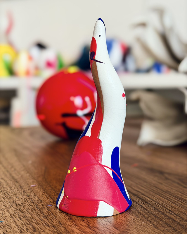 Corno in terracotta dipinto a mano, pezzo unico. Altezza circa 10cm.