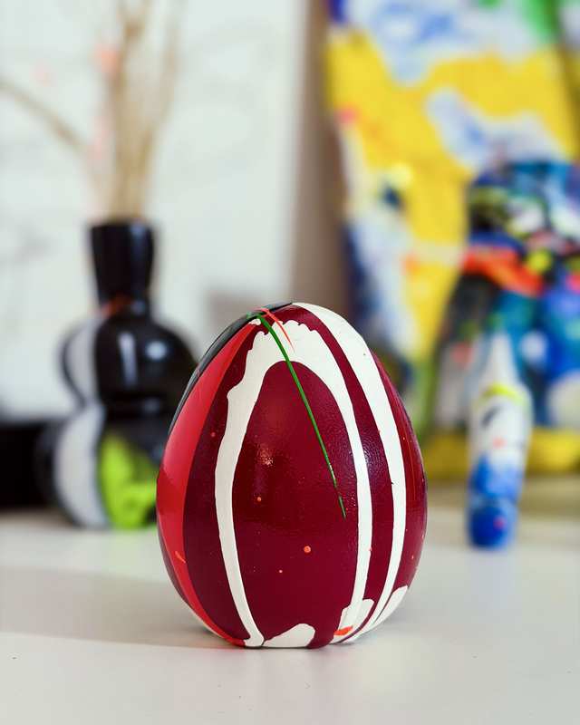 Uovo in terracotta dipinto a mano, pezzo unico. Altezza circa 10cm.